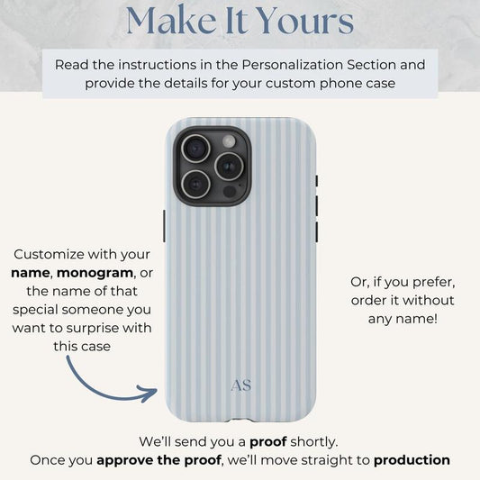 Personalized Blue Striped Phone Case - Custom Monogram Design for a Chic Summer Vibe
